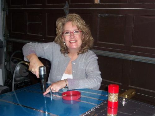 Bruce tries to pretend that he's really in charge when he says, on his website, that: "...She has even helped me from time to time when I need another pair of hands with riveting! She knows her way around a rivet gun and does a superb job. She is looking forward to flying and traveling adventures together with me. What an amazing woman!"