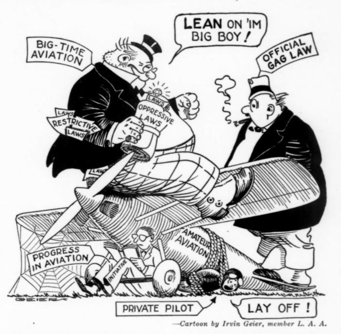 Les felt that the Federal rules favored “big business.” He frequently argued that the average person (post Great Depression) couldn’t afford a license, training, or the cost of certified aircraft ownership. Besides, amateurs were the future would-be customers, commercial and military pilots.[29]